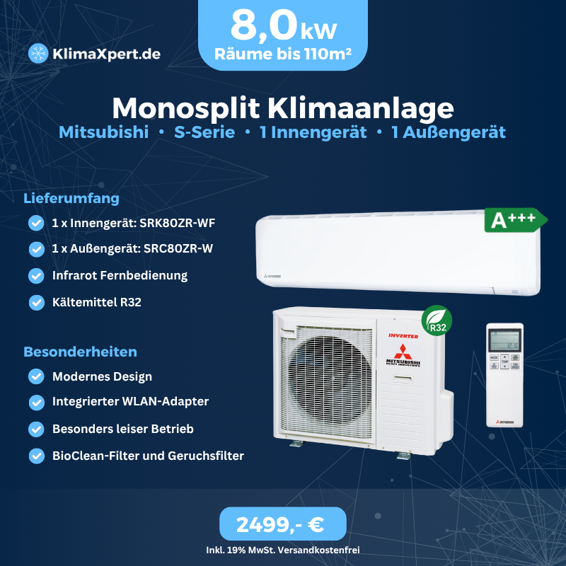 8,0 kW Split Klimaanlagen-Set Mitsubishi Heavy Industries mit 1x Innengerät und 1x Außengerät